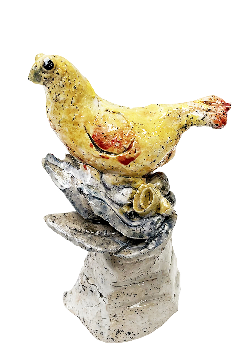 Ceramic sculpture measuring 16 cm high, 10 cm wide and 10 cm deep.